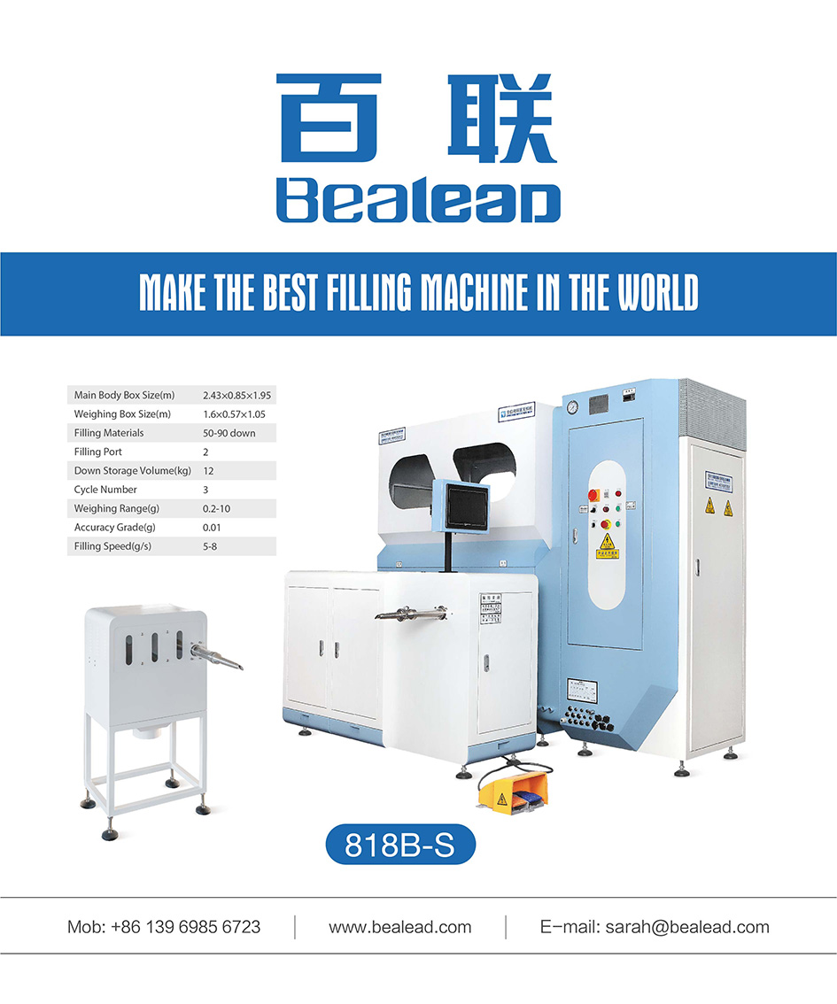 Bealead Exhibits:818B high performance aircraft; 1202B feather quilt down-filling machine; semi-automatic home textiles down-filling machine 101B
