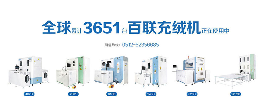 Main products: 618C full-automatic four-port flow method down-filling machine; 402B full-automatic weighing cotton-filling machine