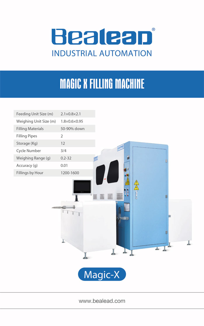 Bealead Exhibit: X-type modularization down-filling machine, 402D full automatic all-in-one machine of cotton & down, 618A full automatic four flow method down-filling machine