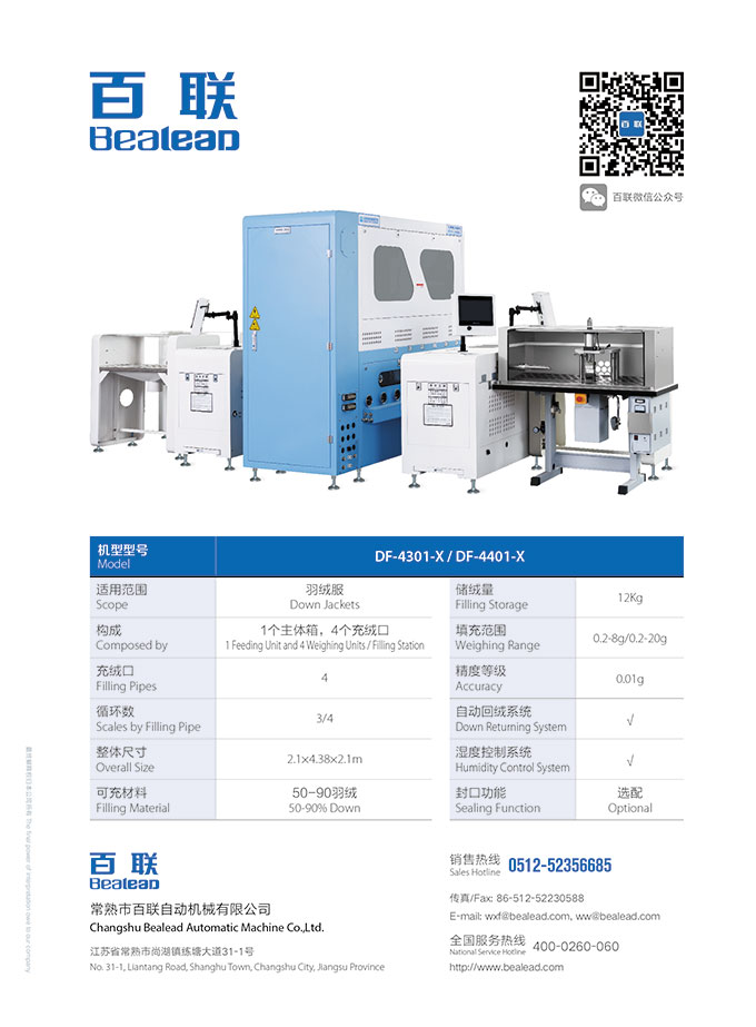 百聯(lián)展品:X型模塊化自動(dòng)充絨機(jī)(2401X加封口機(jī))