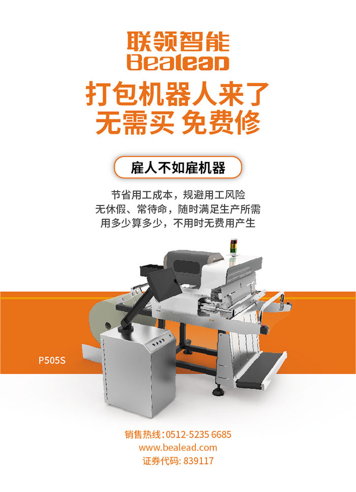 百聯(lián)還將展示全新的P505S型發(fā)包機(jī),它不僅具有智能打印、高效省工、優(yōu)質(zhì)體驗(yàn)、節(jié)能環(huán)保功能,還在商業(yè)模式上有所創(chuàng)新——用戶無(wú)需購(gòu)買即可享有“打包機(jī)器人”的使用權(quán)。