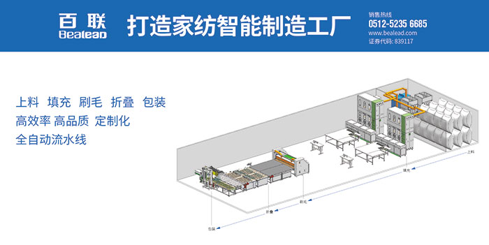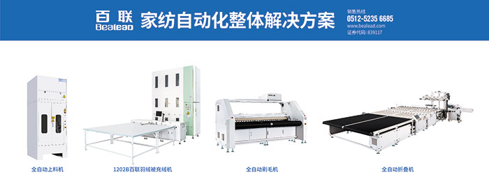 參展期間,百聯(lián)還將重磅推出“家紡自動(dòng)化整體解決方案”這是百聯(lián)多年自主研發(fā)經(jīng)驗(yàn)積累、緊貼家紡領(lǐng)域客戶需求而提供的專業(yè)自動(dòng)高效化整體解決方案,可以滿足羽絨被、枕芯、靠墊、睡袋等多種生產(chǎn)需求。