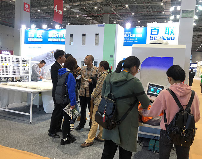 緊跟行業(yè)發(fā)展趨勢(shì),百聯(lián)在本屆家紡展期間重點(diǎn)展示了 “家紡系列定制產(chǎn)品”,以豐富的、可定制化的家紡自動(dòng)化解決方案滿足家紡企業(yè)個(gè)性化、多樣化的生產(chǎn)需求。該“定制化”的家紡系列產(chǎn)品,以被子類、枕芯類、配套類三大產(chǎn)品系列中的1202B羽絨被充絨機(jī)、102B商超羽絨被充絨機(jī)、F2215全自動(dòng)折疊機(jī)、TF-1206羽絨枕芯機(jī)、TF-1208全自動(dòng)棉枕芯機(jī)以及枕芯壓縮包裝機(jī)、全自動(dòng)上料機(jī)、全自動(dòng)刷毛機(jī)等基礎(chǔ),根據(jù)用戶的工藝要求,進(jìn)行個(gè)性化的開(kāi)發(fā)與設(shè)計(jì)。