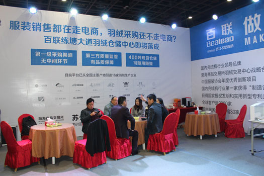 展會(huì)現(xiàn)場(chǎng)客戶(hù)絡(luò)繹不絕,很多都是常熟本地已使用我們百聯(lián)充絨機(jī)的老客戶(hù),看到我們百聯(lián)練塘大道羽絨倉(cāng)儲(chǔ)中心即將落成的消息非常感興趣,我們擁有16家羽絨生產(chǎn)企業(yè)直接供貨,直接采購(gòu),無(wú)中間環(huán)節(jié);第三方質(zhì)量監(jiān)管,羽絨有品質(zhì)保障;400噸現(xiàn)貨倉(cāng)儲(chǔ),可隨用隨提。為常熟的用絨企業(yè)減少采購(gòu)成本,現(xiàn)場(chǎng)客戶(hù)了解后就簽約提貨!