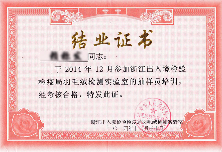 我們有專業(yè)抽樣師在羽絨包裝的上中下位置分別取樣,對于捆包和積壓包有專門的抽樣動作防止絨朵損傷。專業(yè)化抽樣合格后,將這些樣品充分混勻再抽樣,送到權(quán)威的檢測機構(gòu)檢驗。