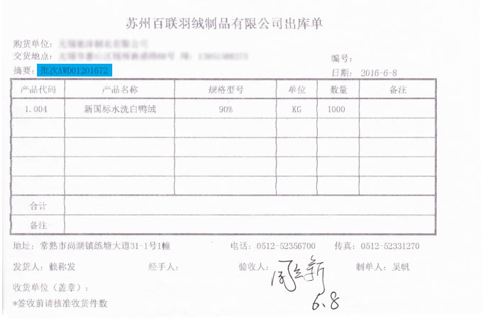 百聯(lián)羽絨所執(zhí)行的是批次號管理,質(zhì)量把關(guān)每一批次貨品。